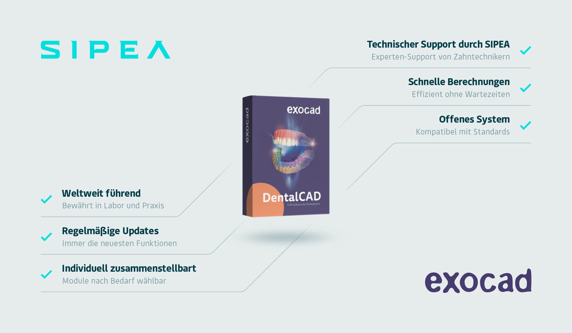 Bei SIPEA erhalten Sie eine original exocad-Version ohne jede Einschränkung – das System ist vollständig frei konfigurierbar.